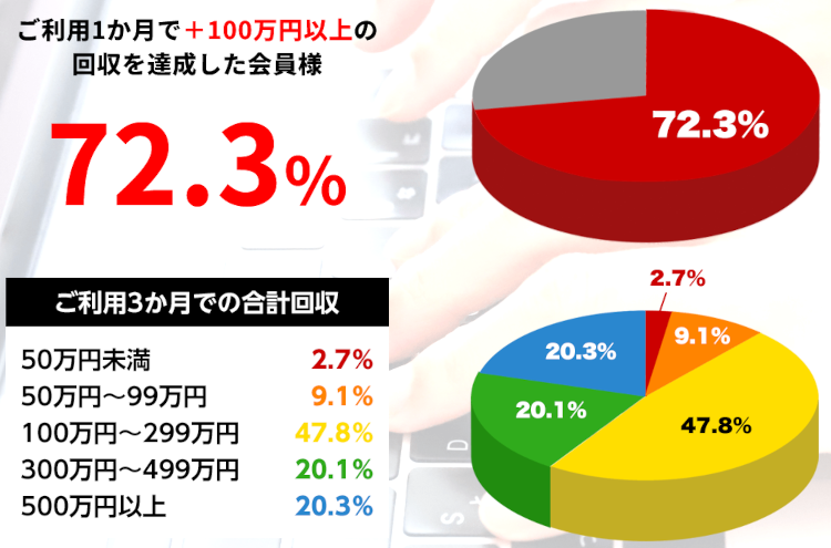 3カ月のご利用では、4割の会員様が300万円以上の回収に成功!