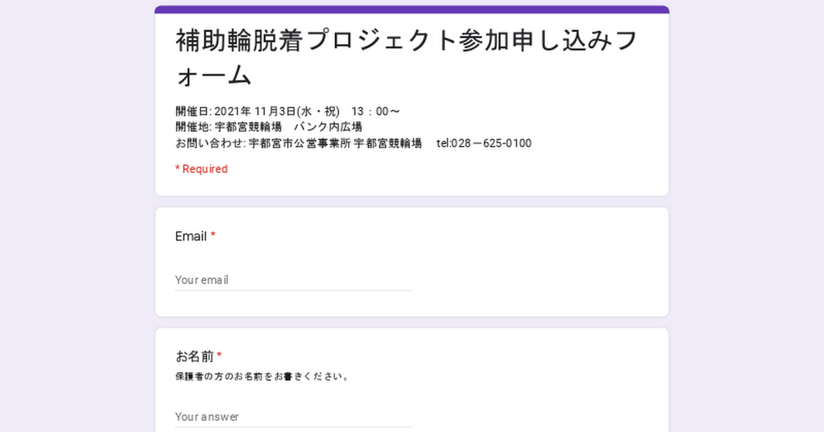 補助輪脱着プロジェクト参加申し込みフォーム