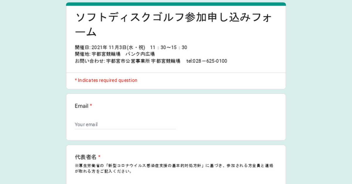 ソフトディスクゴルフ参加申し込みフォーム