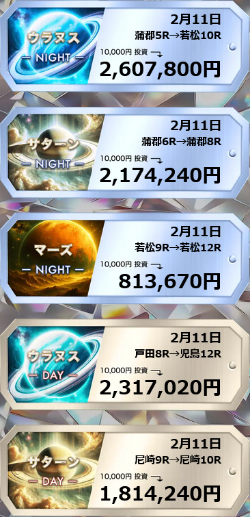こんなにすごい結果をたったの2レースコロガシで!