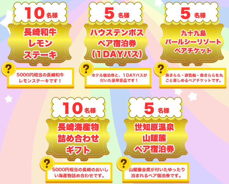 応募してくれた方の中から抽選で35名様に長崎グルメや旅をプレゼントします。