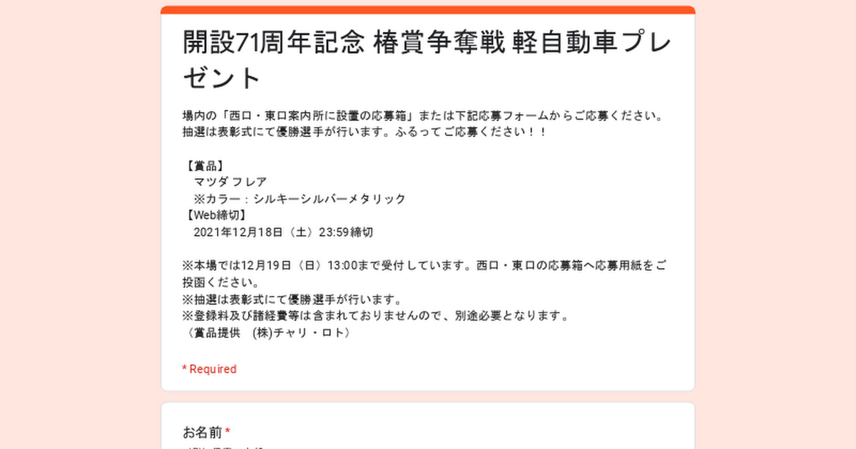 開設71周年記念 椿賞争奪戦 軽自動車プレゼント
